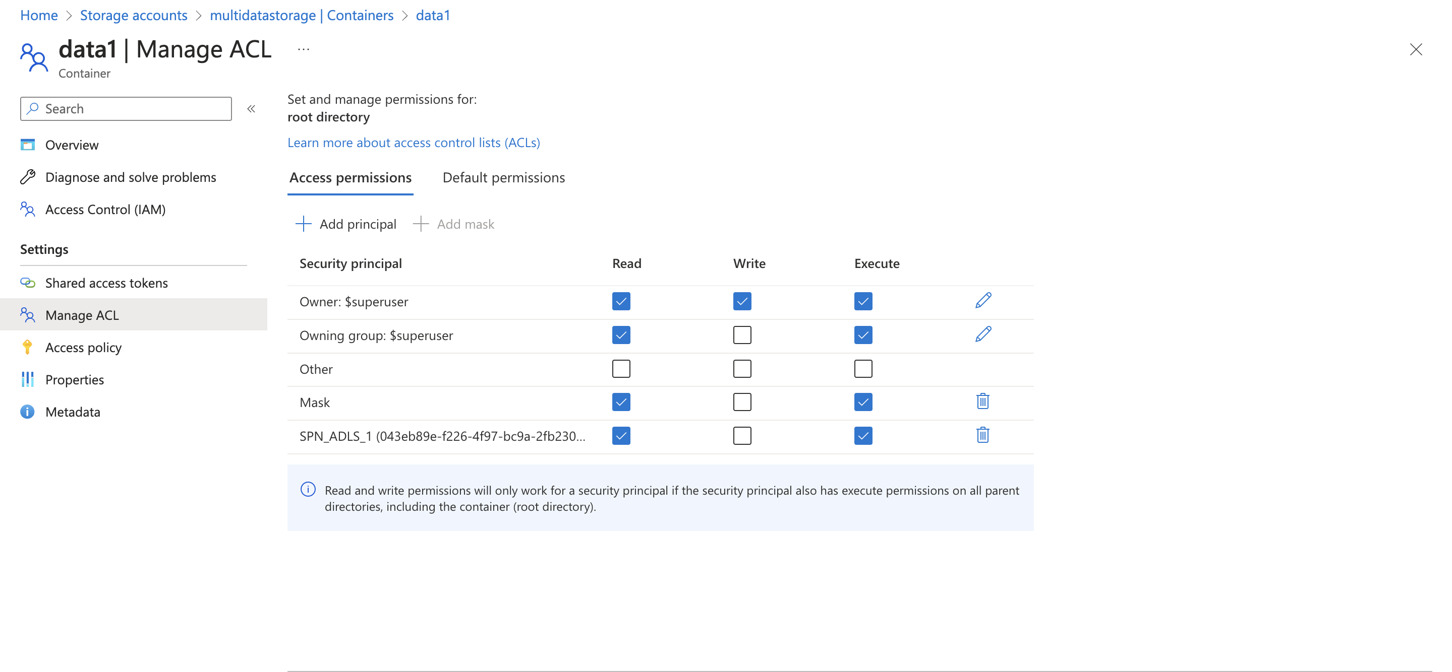 Now we can repeat the same steps for the SPN_ADLS_2 to grant the ACL for the container data2
