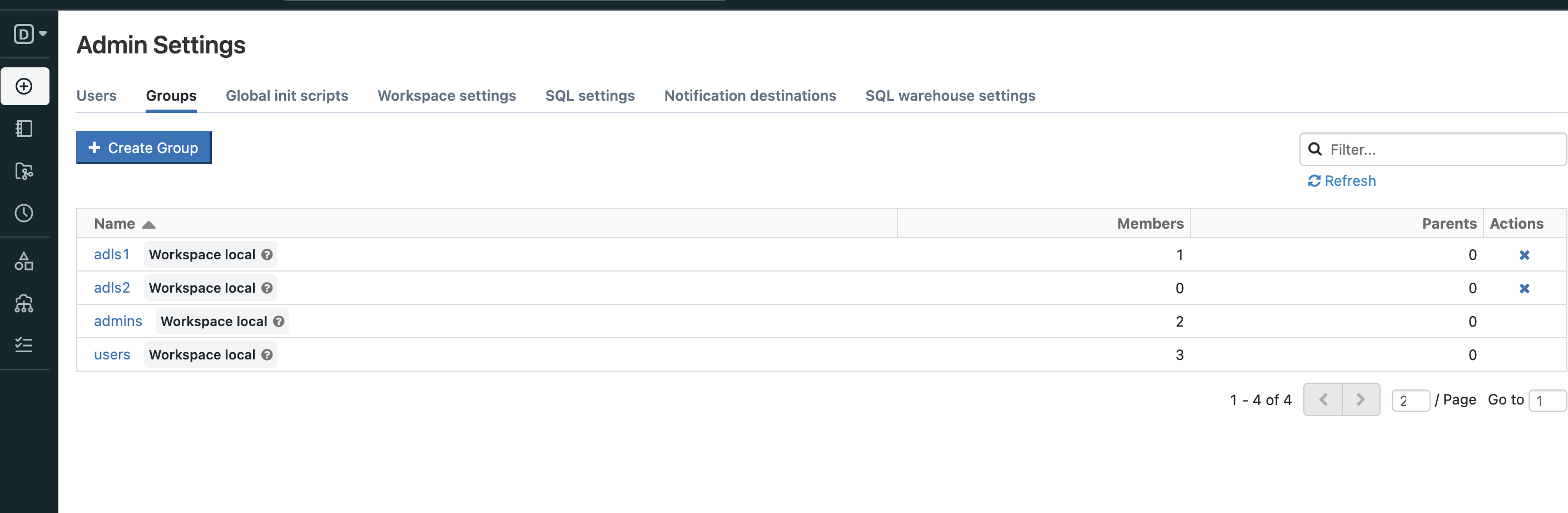 Now that we have all the ingredients we can configure databricks for grant the correct access to each groups. But first we need to create the groups:
