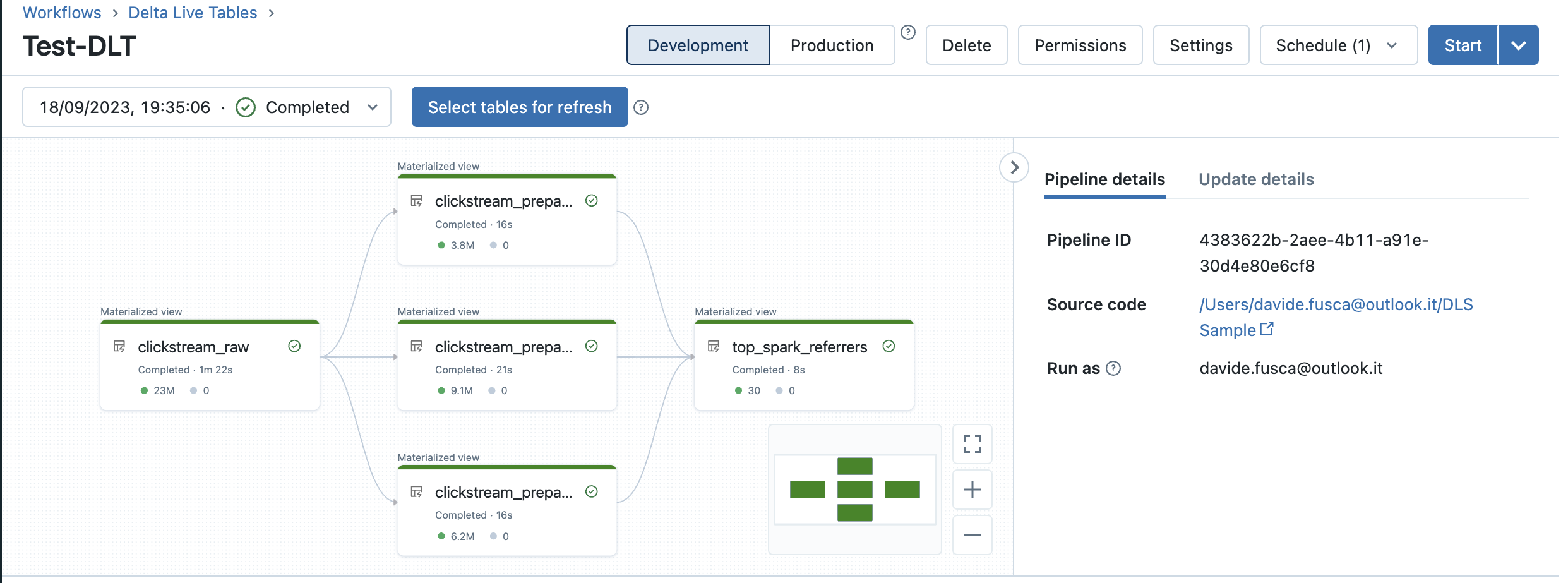 In Development Mode, the compute resources persist even after a successful or unsuccessful update. This feature enables you to efficiently reuse the same compute resources for subsequent updates of your pipeline without the delay of cluster initialization.