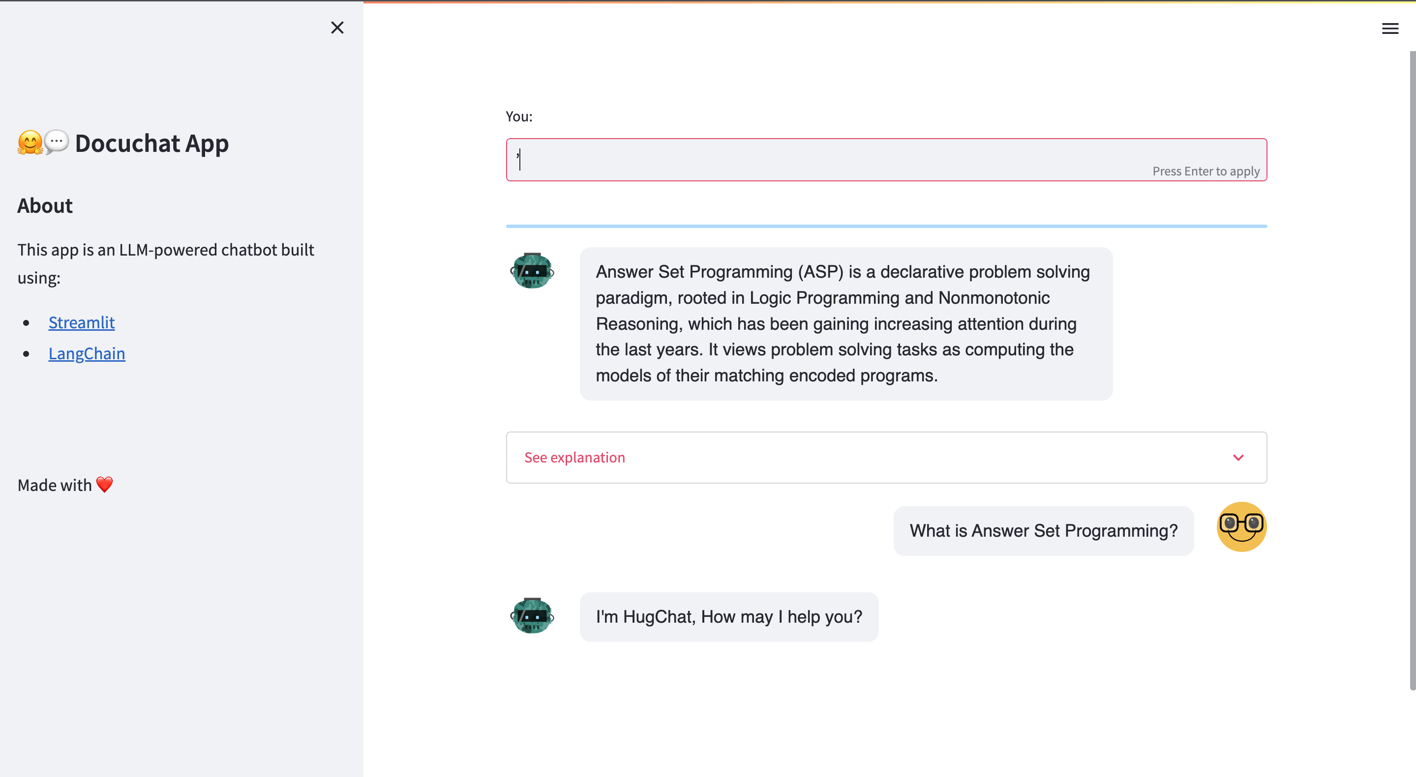 Furthermore, in order to understand the answer of our agent the UI also display the chunks of the used by the LLM to reply to the our question (See explanation tab).