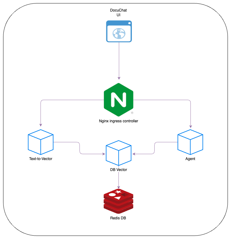 In this blog, we will productionize the document chat agent created in The game of LLM Throne. So the idea is to create a set of microservices for managing the acquisition of the text, storing into DB vector and a UI for chatting with the agent. We will use the following tools: