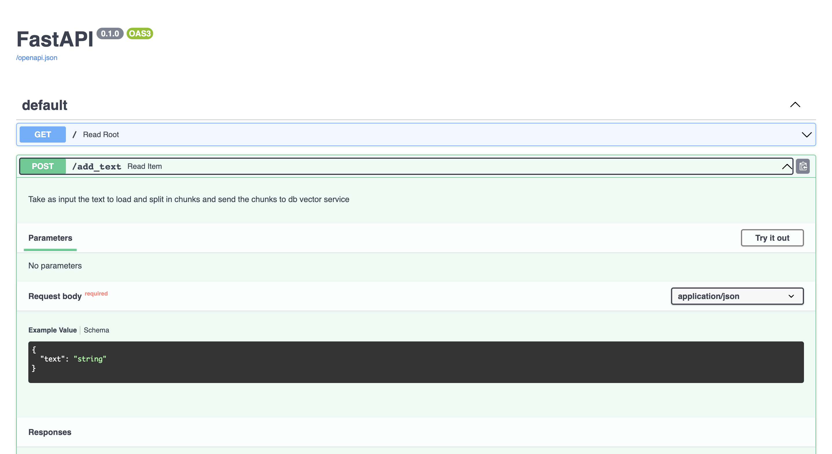 - Text-To-Vector service manage the storing of chunks of text. It takes a long text and it split in chunks and store the chunks into the DB Vector calling the DB Vector service