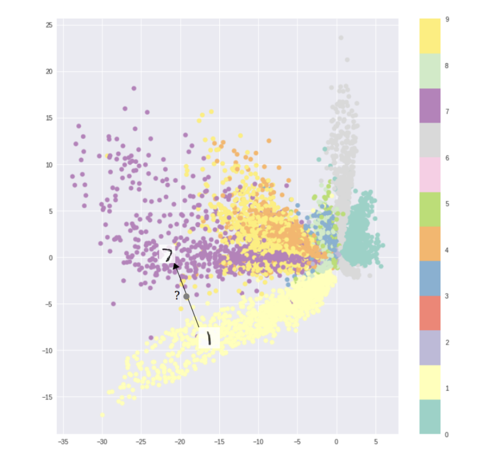 So, for standard autoencoders, we simply need to learn an encoding which allows us to reproduce the input. As you can see in the first figure, focusing only on reconstruction loss does allow us to reproduce the original handwritten digit, but there are areas in latent space which don’t represent any of our observed data. But, if we ensure that the latent distribution is continuos (through our KL loss) we can create a latent space similar to the second figure usefull for the image morphing.