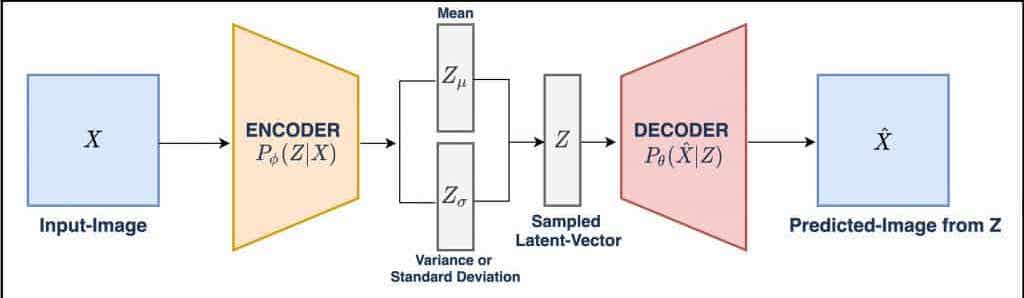 Specifically, the encoder maps the input image to the mean and variance of a multivariate Gaussian distribution over the latent code. The decoder then samples from this distribution to generate a new latent code, which is used to generate the output image. Basically training a VAE involves minimizing a loss function that consists of two components: a reconstruction loss, which measures the difference between the input image and the output image, and a regularization loss, which encourages the learned distribution over the latent code to match a prior distribution, such as a unit Gaussian. The regularization loss is the core of the VAE that helps prevent overfitting and encourages the VAE to learn a smooth, continuous latent space.