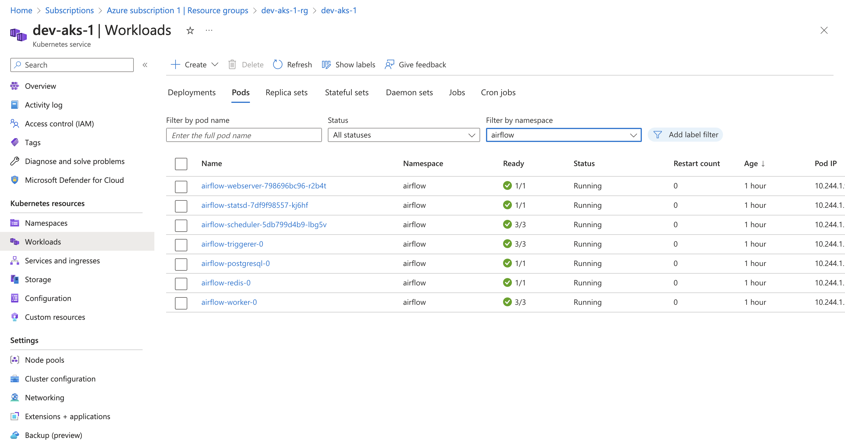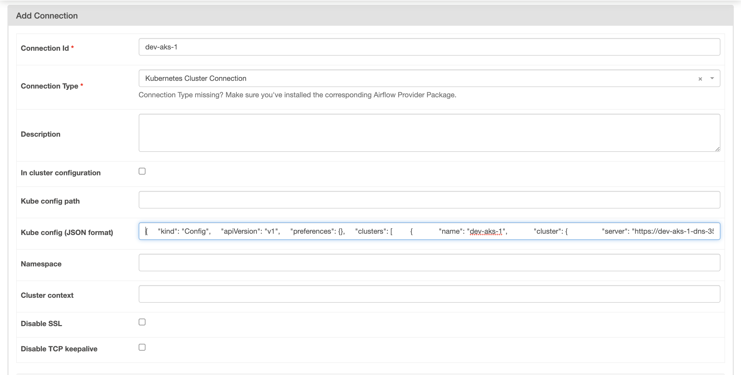 NOTE: dev-aks-1 is the Connection ID previously created in Airflow.